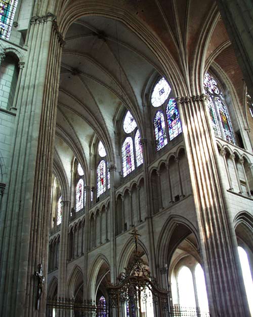 Die Glasmalereien auf den Fenstern der Kathedrale gehören zu den schönsten und ältesten Frankreichs. Sie stammen z.t. noch aus dem 13. Jahrhundert. Jüngeren Datum sicherlich ist dieses, dass Jeanne d'Arc inmitten ihrer Lanzenreiter zeigt.