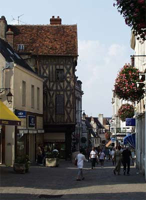 Für Freunde von Fisch und Meeresfrüchten ist insbesondere das Salamandre in der Innenstadt (Rue de Paris) zu erwähnen. Aber auch sonst bietet Auxerre ein großes und qualitätsvolles Angebot an Restaurants, Cafés und Bars. ![]() Ein altes, windschiefes Fachwerkhaus in der Fußgängerzone  |