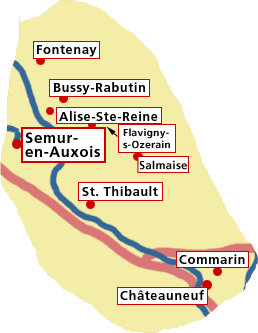 Leider sind noch nicht alle auf der Karte angeführten Orte anklickbar - es fehlen noch Flavigny und Salmaise, diese werden aber demnächst ergänzt.