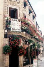 eine alte, blumengeschmückte Weinpresse.Im Dorf selbst herrschte zur Zeit unseres Besuches rege Renovierungsarbeit, die Straßen des Zentrums waren zur Häfte aufgerissen. Trotzdem empfanden wir Gevrey als ruhigen, aber trotzdem lebhaften Ort, mit seinen bald 3000 Einwohnern schon ein kleines Zentrum, kein Wunder, zwischen Dijon und Nuits-St-Georges findet man sonst kaum mal ein Geschäft zum Einkaufen. Es ist auch ein hübscher Ort, ein wenig touristisch, aber nicht störend, und an jeder Ecke wird man zur Weinprobe aufgefordert, was sich stellenweise auch sehr lohnen kann, informieren lohnt sich aber auch hier,  speziell