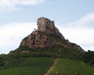 In Mitten der schönen Hügellandschaft des südlichen Mâconnais erhebt sich der eindrucksvolle, schroffe Felsen Solutré. Die zahlreichen Funde aus der Steinzeit unterhalb des Felsens machten ihn auch zu einem Zentrum der prähistorischen Forschung, er gab einer ganzen Epoche der Steinzeit einen Namen (das Solutréens) und mittlerweile dokumentiert auch ein unterirdisches Museum die Bedeutung der hier gemachten Funde. ![]()  |