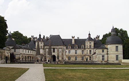 Weit weniger riesig und kühl als das ebenso bekannte, in der Nähe liegende Ancy-le-Franc, ist es kurz nach diesem (1550) im französischen Renaissance-Stil erbaut. Durch ein Portal erreicht man den auf der rechten Seite von Wirtschaftsgebäuden eingesäumten "Cour Verte", links kommt man über eine Brücke über dem Wassergraben zum Hauptportal und schließlich in den Ehrenhof des eigentlichen Schloßes. Eine Innenbesichtigung ist nicht so lohnenswert, zumindest wenn man ähnliche Schlösser schonmal gesehen hat.Während der Religionskriege des 16. Jahrhundert war Tanlay Stützpunkt der Hugenotten, zu deren Führern seine Besitzer gehörten. Ein kleiner Spaziergang durch den Park, der von einem kleinen Flüßchen auf seinen Weg in den Canal de Bourgogne durchquert wird, hilft einem zur Stärkung, wenn man vorher die Ausstellung zur zeitgenössischen Kunst besichtigt hat, die in der Saison in einem Teil der ehemaligen Wirtschaftsgebäude stattfindet. Tanlay ist auf jeden Fall einen kurzen Besuch wert, auch um es nur von draußen zu betrachten - an einem Dienstag wird man auch nicht mehr erreichen, dann ist nämlich Ruhetag.  |