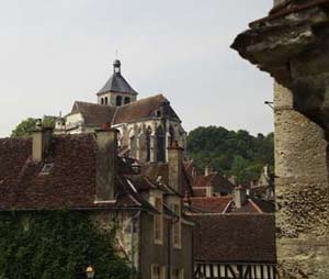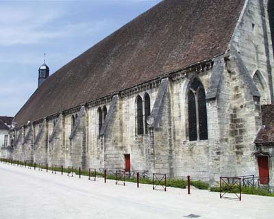 An den Ausläufern eines Hügels gelegen, überragt von einer kleinen Kirche auf einem Plateau über der Altstadt verfügt dieser 6000 Einwohner-Ort über alleIngredienzen für das typische hübsche burgundische Städtchen - in Reiseführern wird Tonnerre denn auch meist so beschrieben. Ob es nun am schwülen Wetter lag oder auch am ziemlich kloakenhaften Duft entlang des Weges zum Fosse Dionne - wir waren bei unserem bisher einzigen Besuch nicht in der Lage uns für diesen Ort zu begeistern.Etwas öde wirkte es auf dem Platz um das alte Armenspital aus dem 13. Jahrhundert, welches selbst in seiner Schlichtheit und durch die Größe imposant wirkte. Auch das Innere mit der beeindruckenden Dachkonstruktion und einigen interessanten steinernen Figuren ist recht sehenswert.  | ||