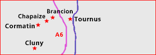 und der umgebenden Dörfer. Tournus mit seiner schönen Lage an der Sâone und der Abteikirche St. Philibert - einem Glanzstück der romanischen Architektur Burgunds - ist das Zentrum dieser Gegend. Auch hier ist die Landschaft eine der schönsten der Welt, das Bild links - ein Ausblick auf La Chapelle-sous-Brancion vom Plateau von Brancion - kann dies aufgrund der allgemeinen Mängel der Photographie und auch wegen seiner Größe nur dürftig wiedergeben, die Größe läßt sich mit einem Klick auf das Bild beheben. (Achtung, fast 100 KB! Wer keine supergroße Auflösung hat kann sich mit den Bewegungen der Maus durch das Bild dirigieren)  |